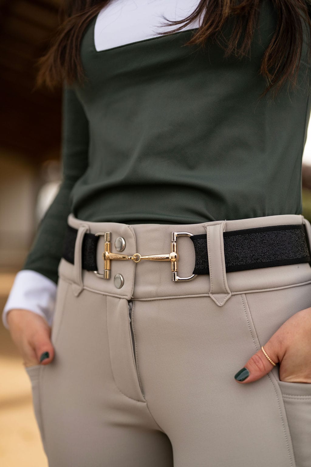 The perfect finishing touch to any outfit, from home to the show ring, this beautiful two-tone D-Ring bit belt.