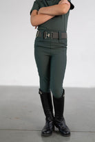 The perfect finishing touch to any outfit, from home to the show ring, this beautiful two-tone surcingle buckle belt.