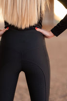 - Elite equestrian legging with FRE's custom full seat or knee patch silicone grip system.