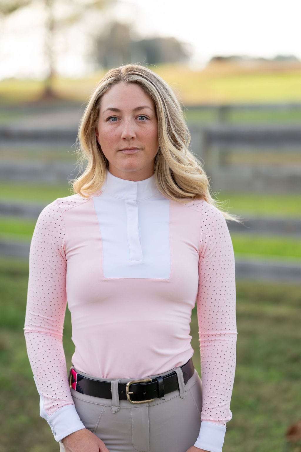 Introducing the Amelia Show Shirt, the perfect blend of elegance and functionality and hunter ring approved! Crafted from a luxurious fabric, this shirt offers a soft touch and a refined look that stands out in the show ring.