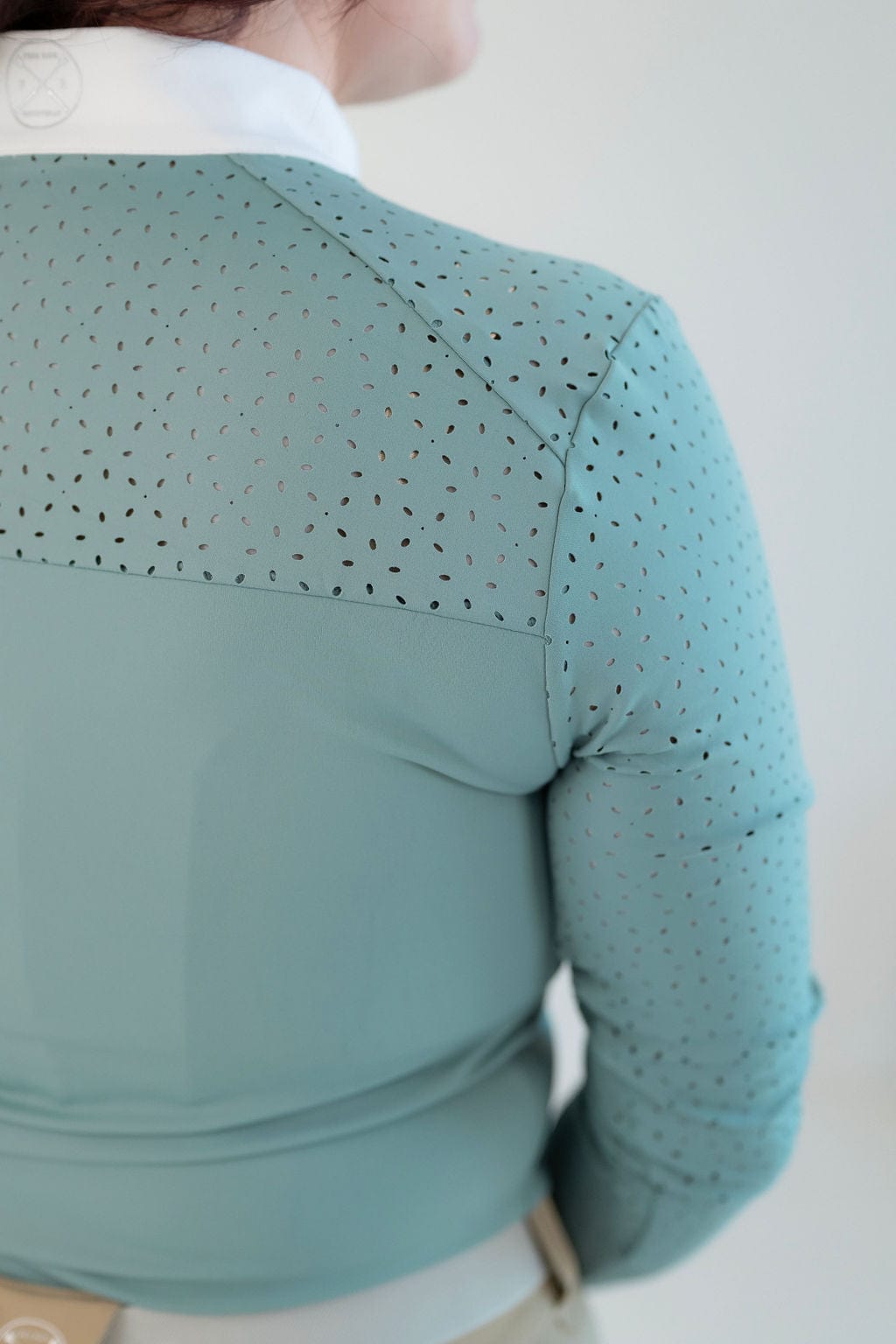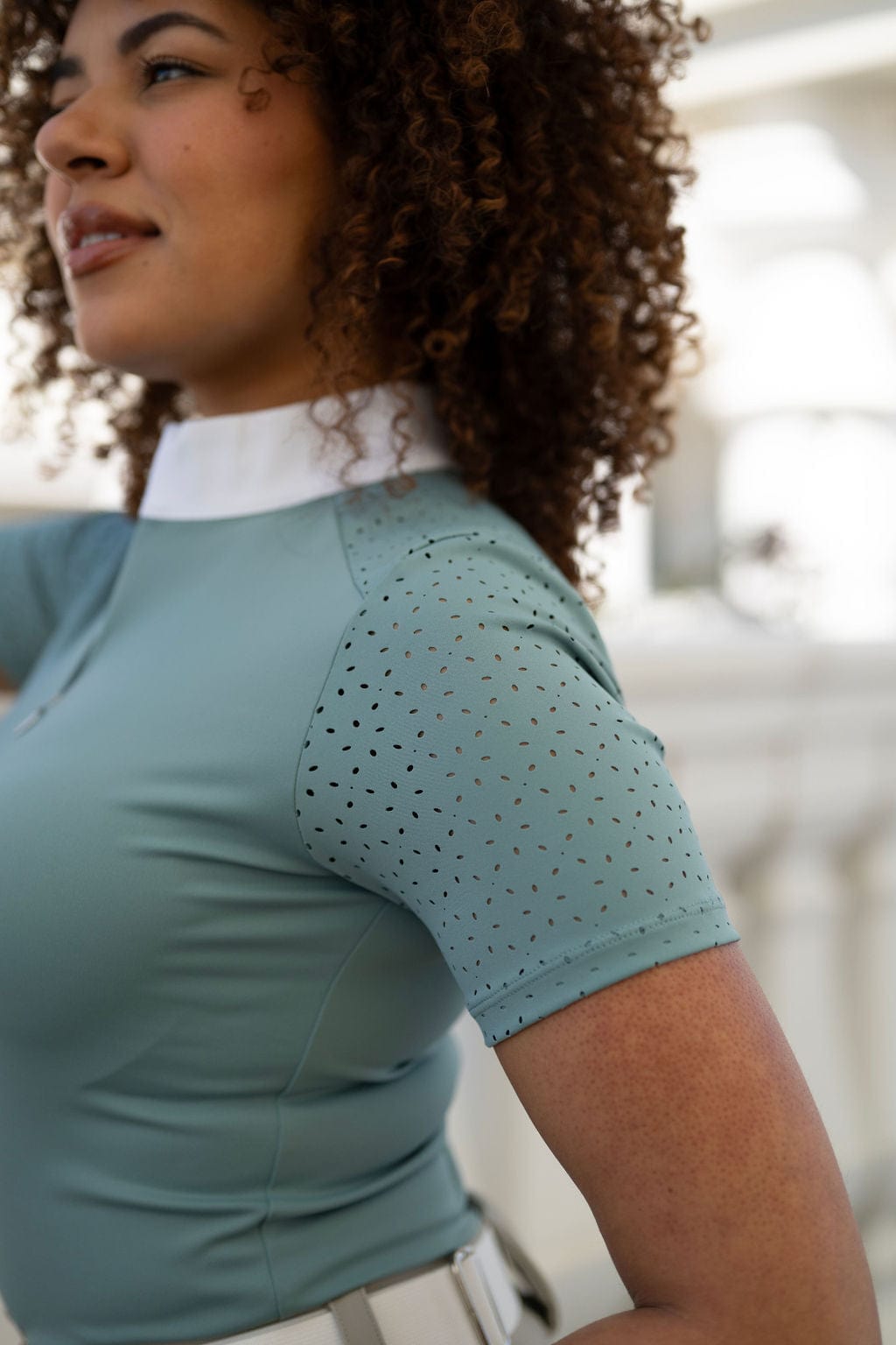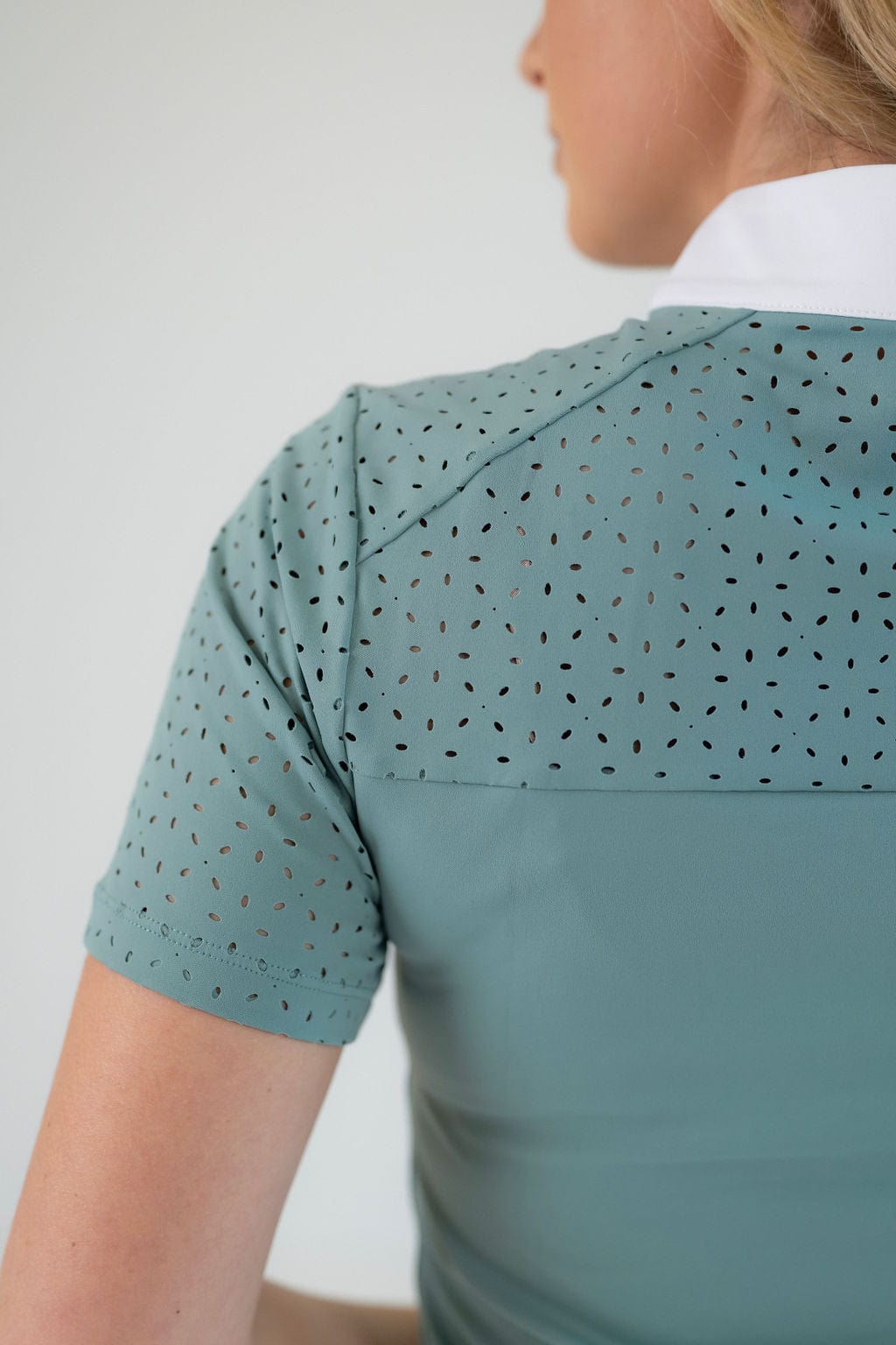 Introducing the Cassidy Show Shirt: where high performance meets sophisticated style. Crafted from advanced moisture-wicking fabric, this shirt ensures you stay cool and dry even during the most intense competitions. The breathable material quickly draws sweat away from your skin, keeping you comfortable and focused.