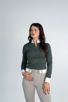 Introducing the Cassidy Show Shirt: where high performance meets sophisticated style. Crafted from advanced moisture-wicking fabric, this shirt ensures you stay cool and dry even during the most intense competitions. The breathable material quickly draws sweat away from your skin, keeping you comfortable and focused.