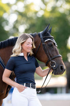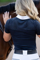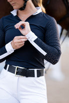 Introducing the Cassidy Show Shirt: where high performance meets sophisticated style. Crafted from advanced moisture-wicking fabric, this shirt ensures you stay cool and dry even during the most intense competitions. The breathable material quickly draws sweat away from your skin, keeping you comfortable and focused.