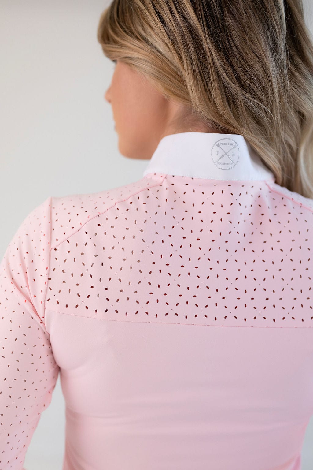 Introducing the Cassidy Show Shirt: where high performance meets sophisticated style. Crafted from advanced moisture-wicking fabric, this shirt ensures you stay cool and dry even during the most intense competitions. The breathable material quickly draws sweat away from your skin, keeping you comfortable and focused.