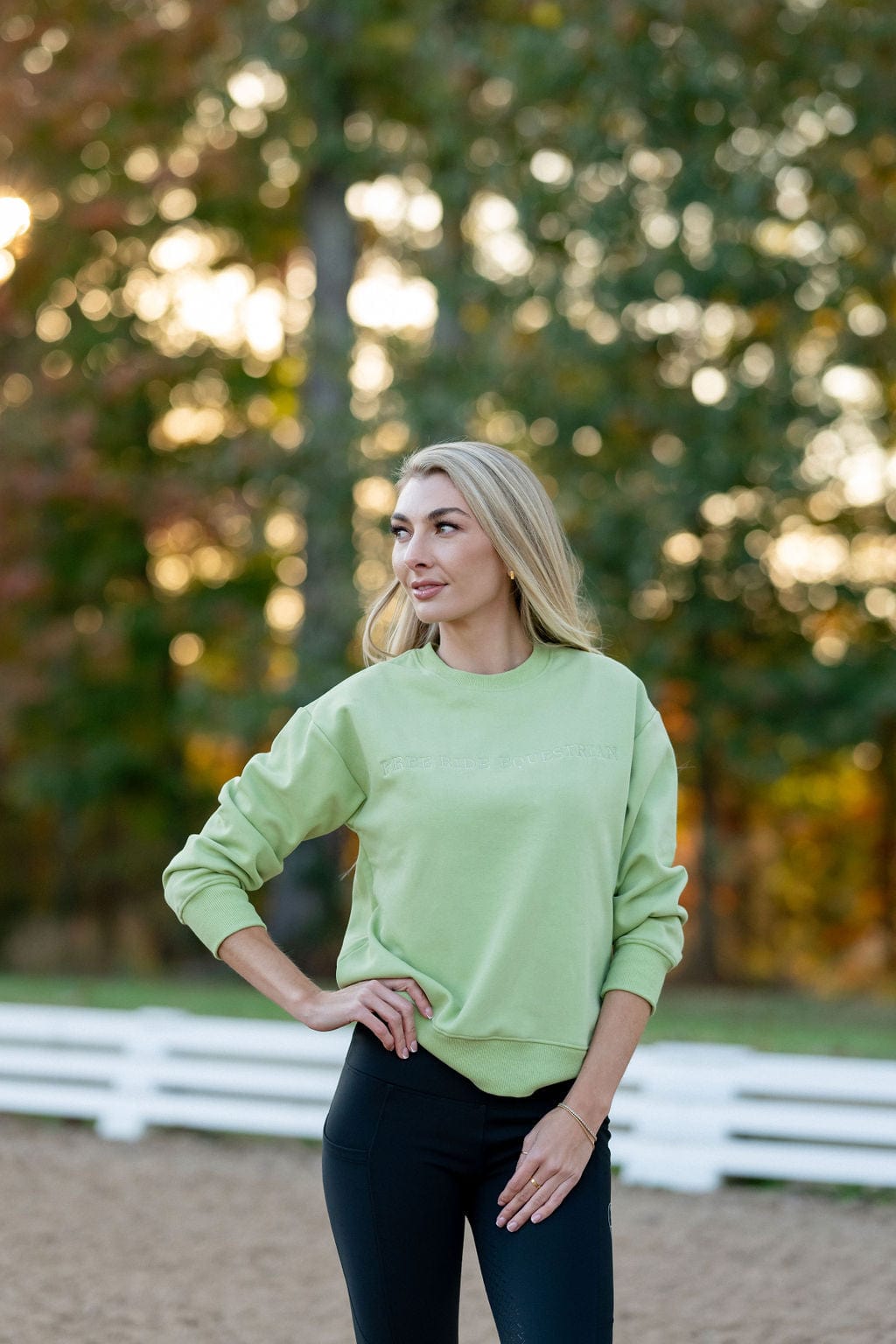 Wrap yourself in warmth with our Plush Crew Neck Sweatshirt. Soft and fleece-lined, it offers ultimate comfort for chilly days at the barn or casual outings around town. Stylish and versatile, this sweatshirt is perfect for layering! This sweatshirt is slightly heavier than our Crew Neck Sweatshirt.
