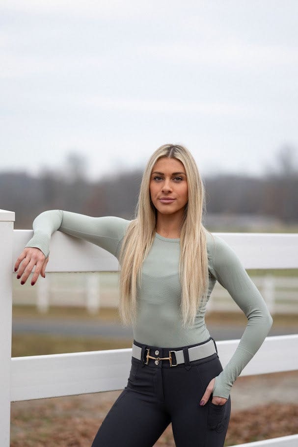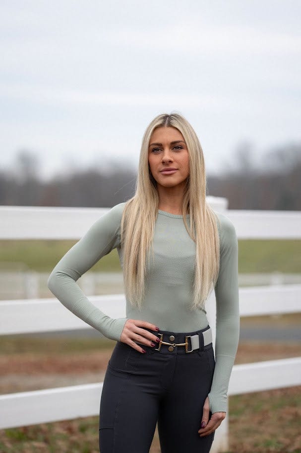 Experience unmatched comfort with our Seamless Long Sleeve Top. Crafted from breathable, sustainable materials, this top features quick-dry and sweat-wicking technology to keep you cool and dry. The four-way stretch design offers exceptional mobility, making it the perfect schooling shirt. Stay stylish and comfortable in the saddle!