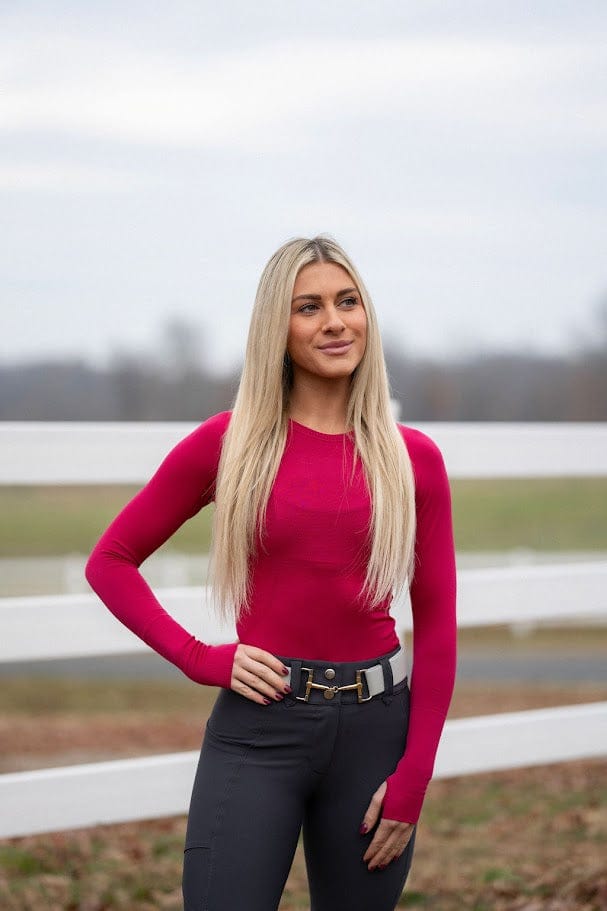 Experience unmatched comfort with our Seamless Long Sleeve Top. Crafted from breathable, sustainable materials, this top features quick-dry and sweat-wicking technology to keep you cool and dry. The four-way stretch design offers exceptional mobility, making it the perfect schooling shirt. Stay stylish and comfortable in the saddle!