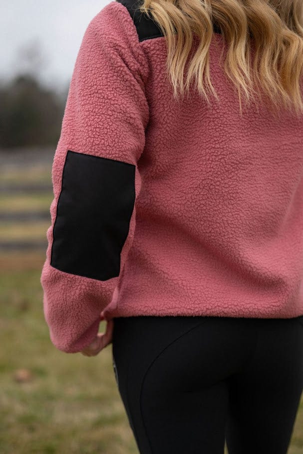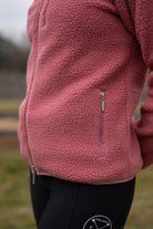Beige unisex teddy jacket. Zip up Jacket with smooth plush inner liner, comfortable fit, and high neck. Made in soft pile material with contrasting fabric sections.
