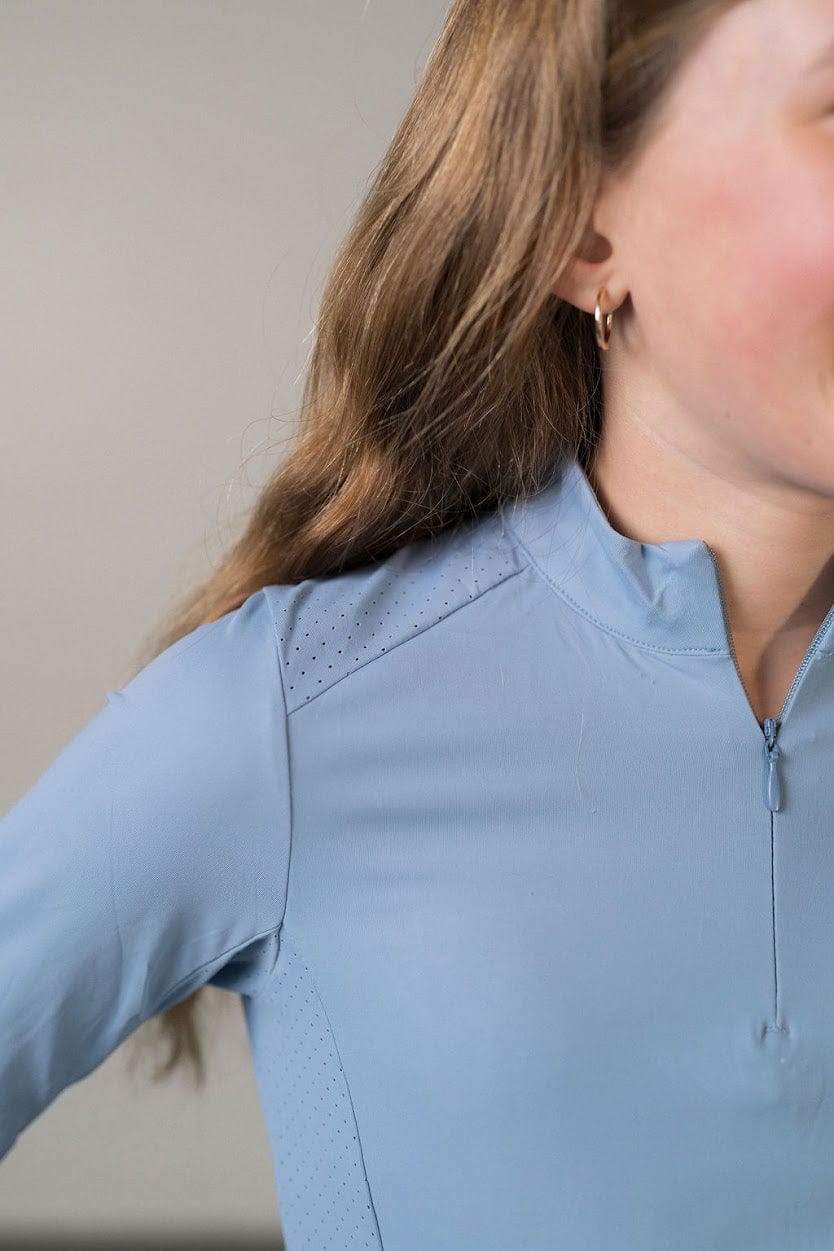 The Sara Sun Shirt has matching color under arms, side panel and upper back jersey mesh. Not just for riding this sun shirt is perfect for running, working out in or layering.