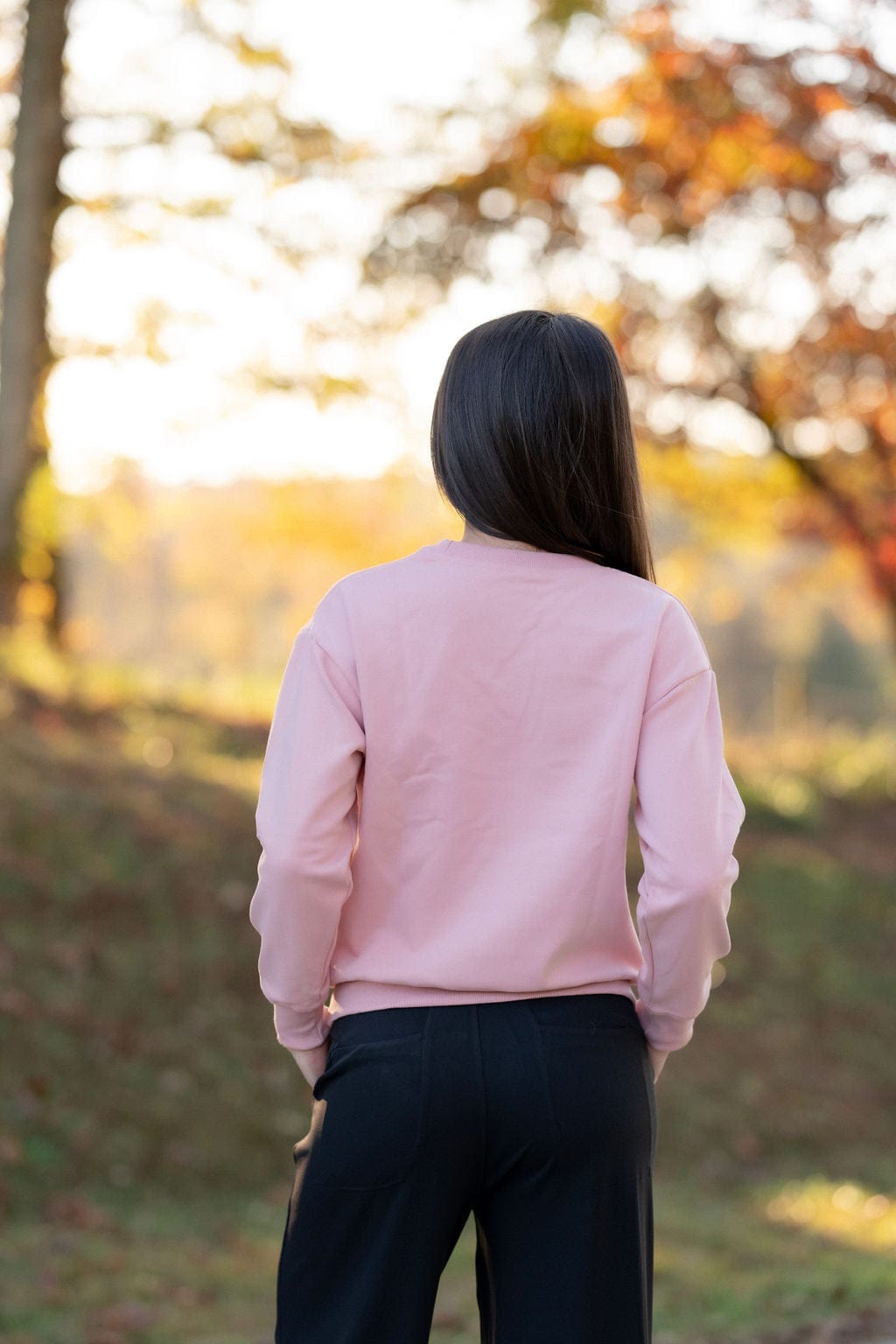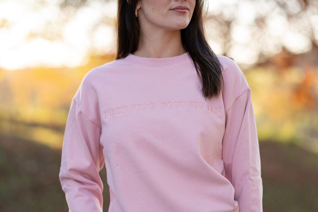 Wrap yourself in warmth with our Plush Crew Neck Sweatshirt. Soft and fleece-lined, it offers ultimate comfort for chilly days at the barn or casual outings around town. Stylish and versatile, this sweatshirt is perfect for layering! This sweatshirt is slightly heavier than our Crew Neck Sweatshirt.