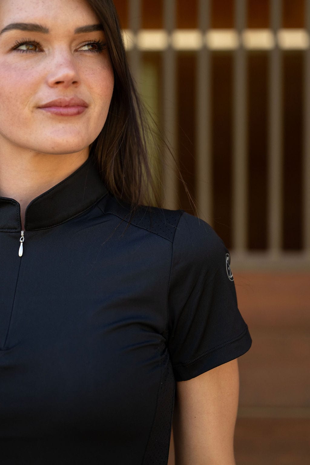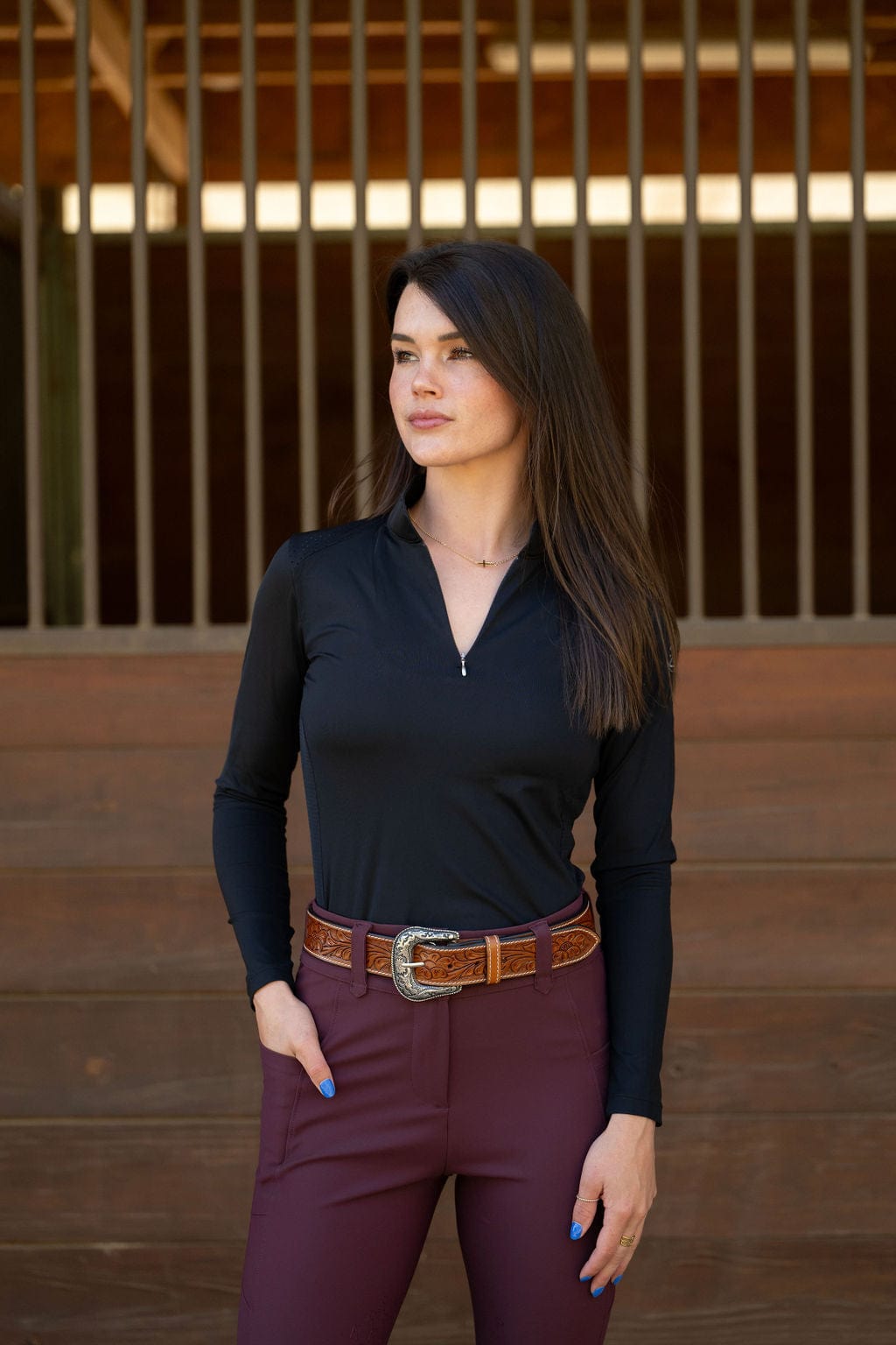 The Sara Sun Shirt features laser cut under arms, side panels and upper back. Not just for riding; this sun shirt is perfect for running, working out in or layering.
