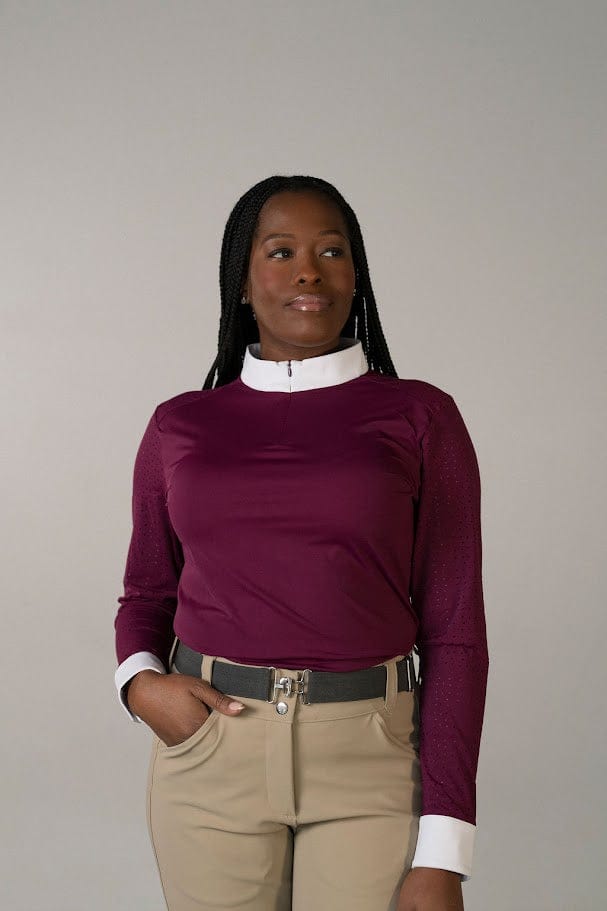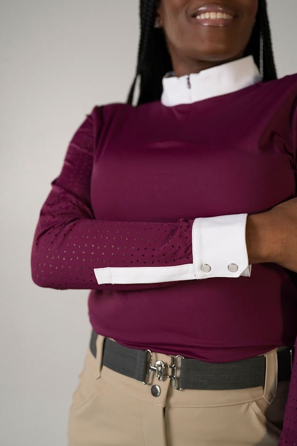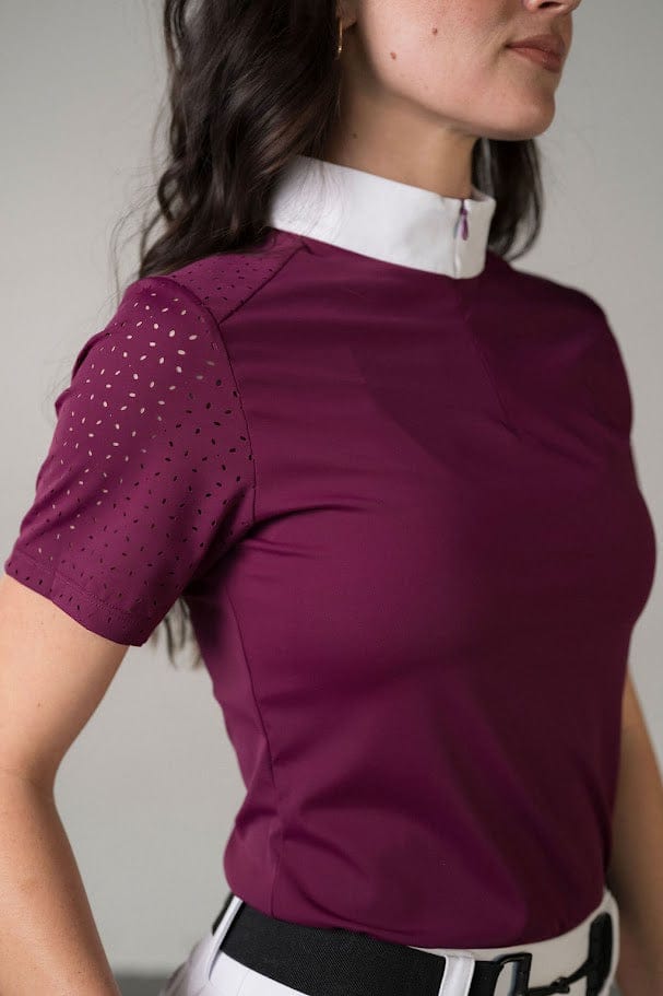 Introducing the Cassidy Show Shirt: where high performance meets sophisticated style. Crafted from advanced moisture-wicking fabric, this shirt ensures you stay cool and dry even during the most intense competitions. The breathable material quickly draws sweat away from your skin, keeping you comfortable and focused.
