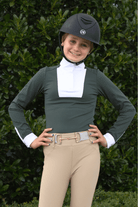 Introducing the Kids Amelia Show Shirt, the perfect blend of elegance and functionality and perfect for the hunter ring! Crafted from a luxurious fabric, this shirt offers a soft touch and a refined look that stands out in the show ring.