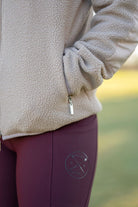 Beige unisex teddy jacket. Zip up Jacket with smooth plush inner liner, comfortable fit, and high neck. Made in soft pile material with contrasting fabric sections.