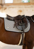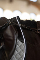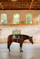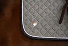 The Tweed All Purpose Saddle Pad classy, elegant, high class, and durable. The with relief shaped saddle pad allows extra freedom at the withers and has cushions to keep the saddle in place. The dark, antibacterial inner lining is quick-dry and easy to clean. The outer material is moisture, dirt, and hair wicking. Details include white piping, black satin binding, and rounded edges. The custom FRE Logo badge make this pad so adorable! Machine wash gentle, air dry only.